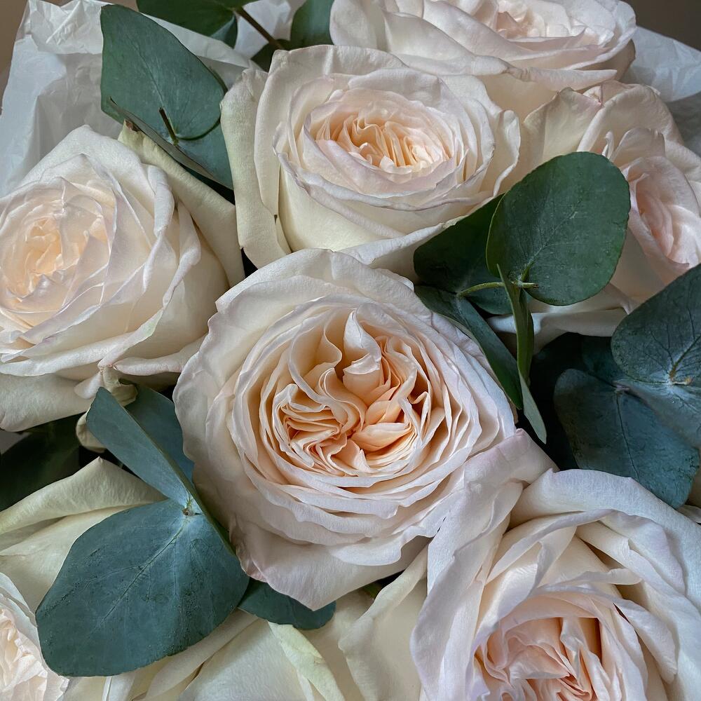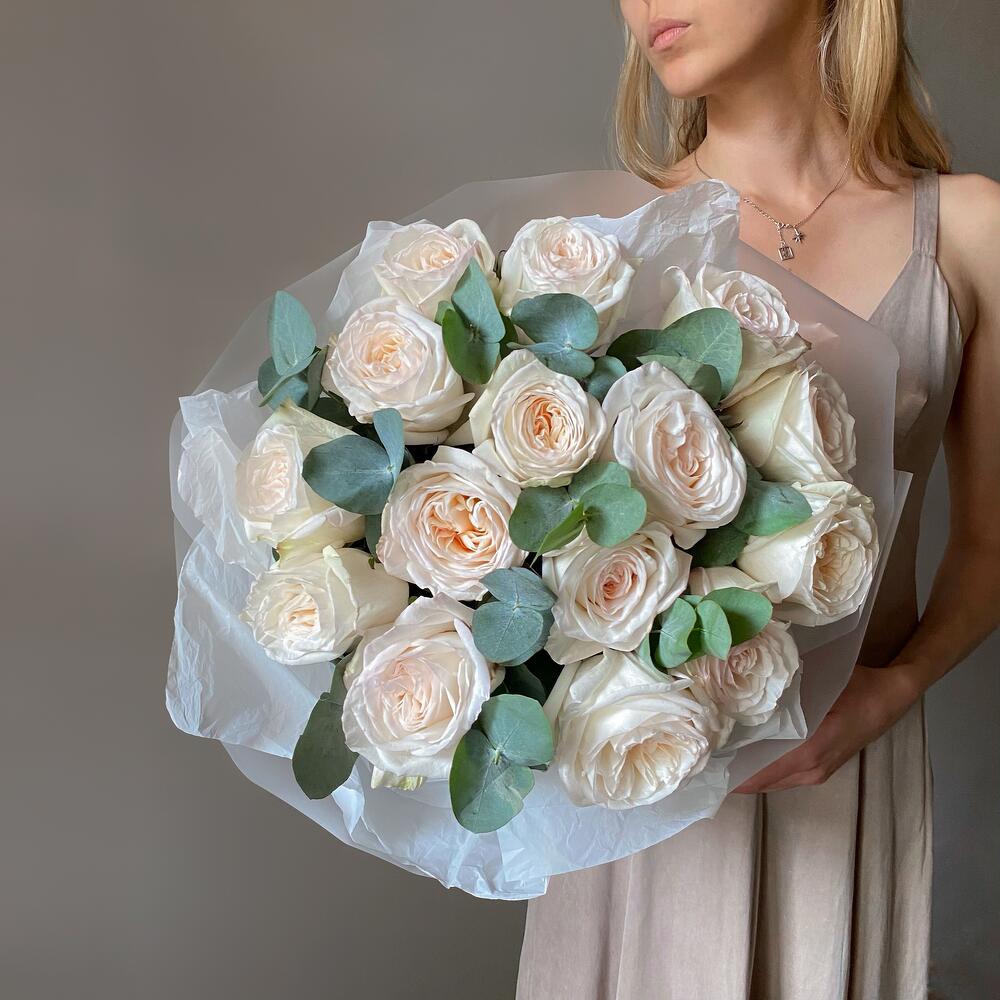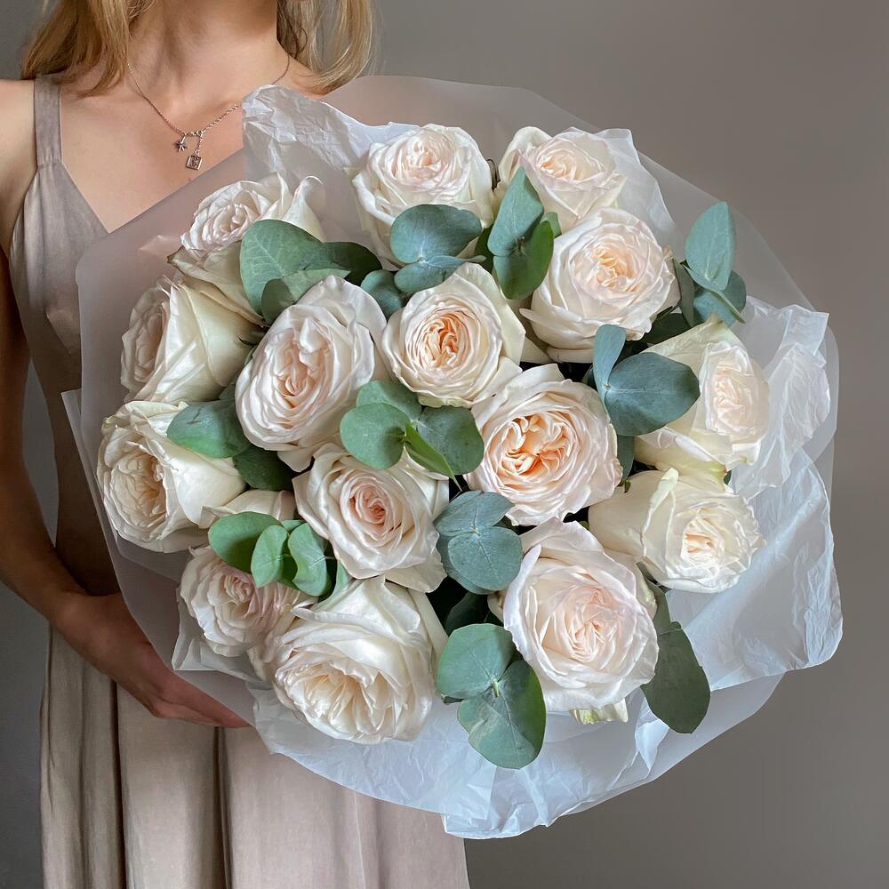 Soft greenery and expressive blooms come together in this fragrant arrangement of 20 garden roses paired with eucalyptus. The special French garden variety Pink O’Hara fills the composition with a rich, refined scent and romantic charm, making it a gift that will truly delight and impress.